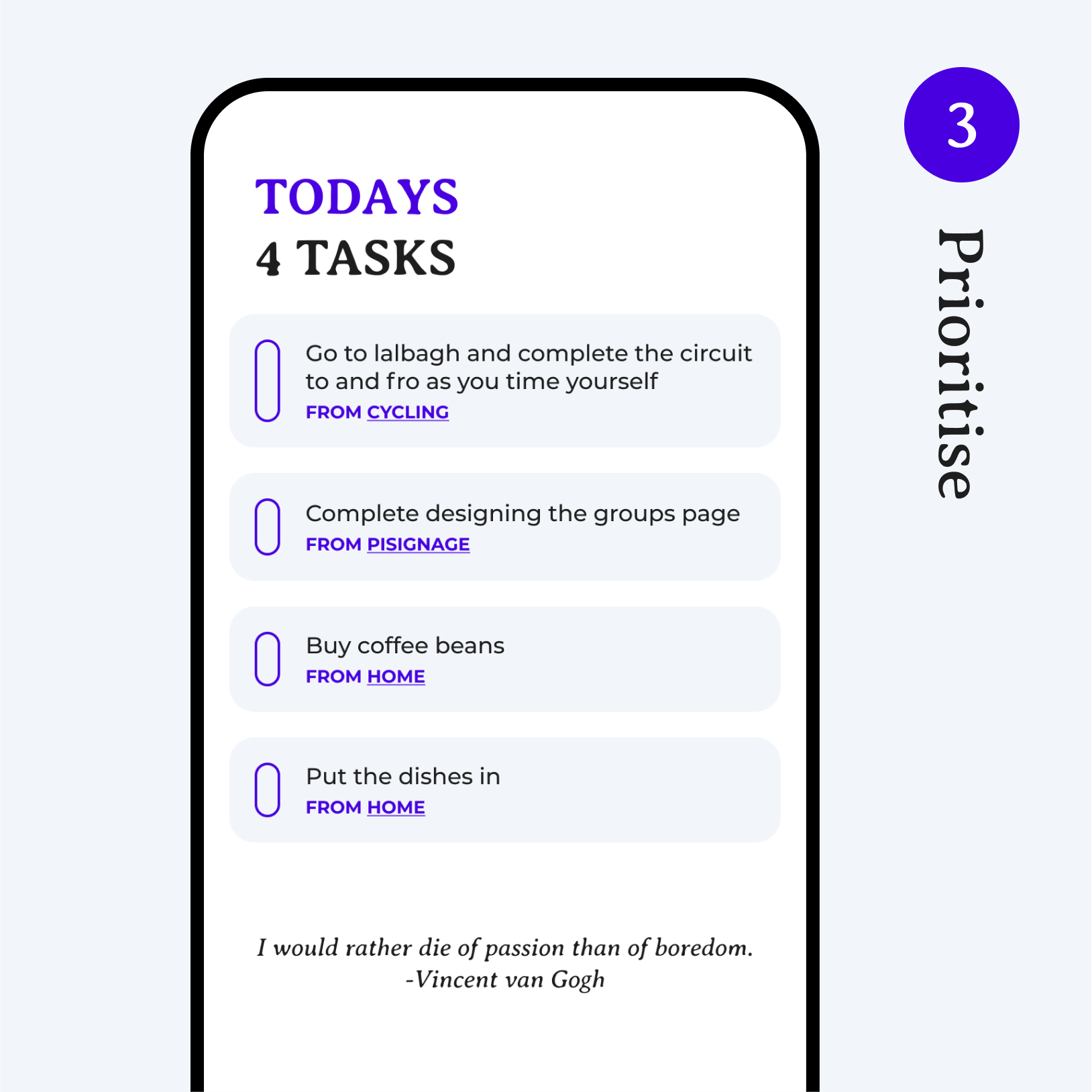 Choose specific tasks from your projects to prioritise